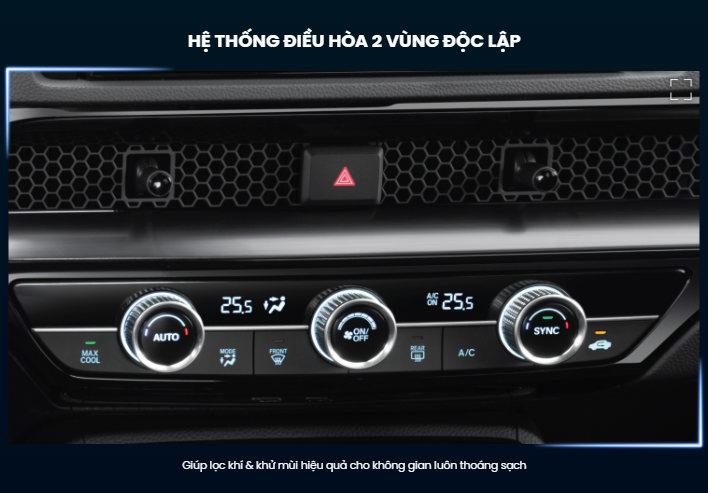 | Hệ thống điều hòa tự động | Hai vùng độc lập | Hai vùng độc lập | Hai vùng độc lập | Hai vùng độc lập | Hai vùng độc lập |